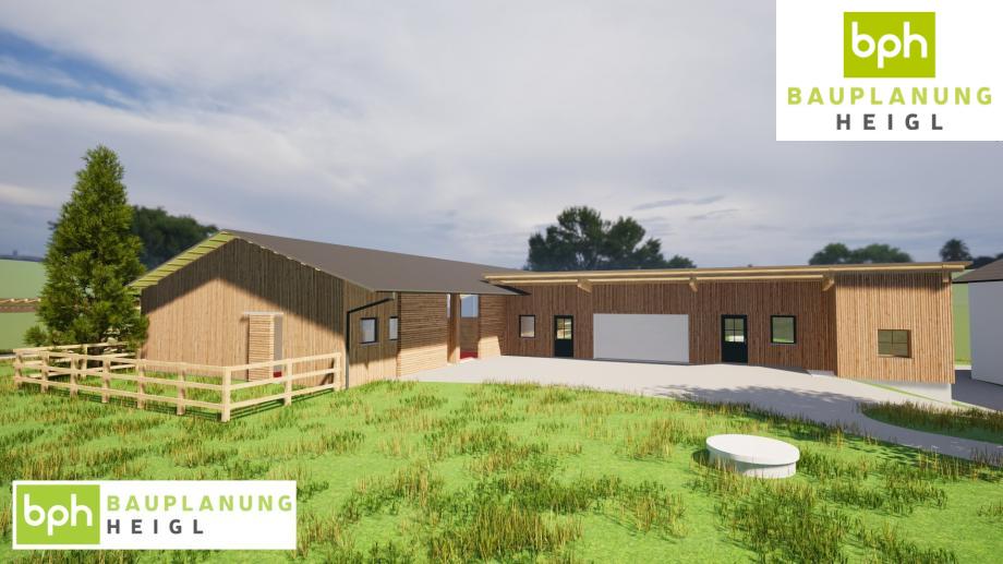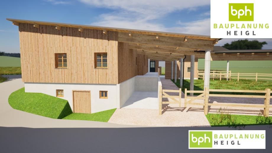 Umbau eines landwirtschaftlichen Nebengebäudes als Pferdestall, sowie Errichtung von überdachten Futterplätzen